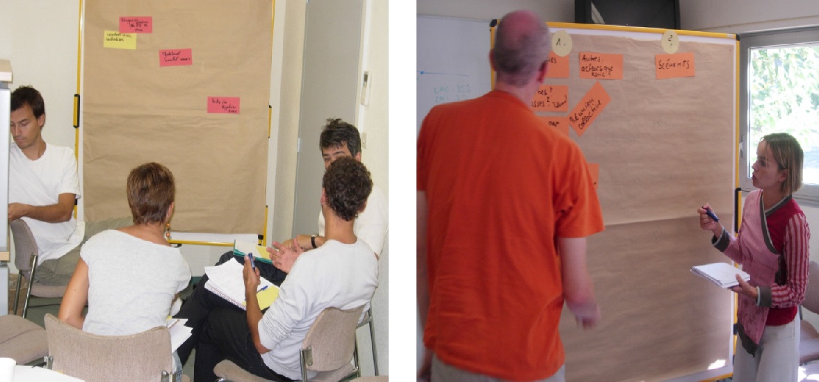 Objectif : Contribution des participants à la réflexion sur la mise en place d’une démarche participative avec des agriculteurs dans la Mitidja afin de tester un certain nombre d’hypothèses émergeant des enquêtes de terrain individuelles ; Collecte et développement d’idées collectives ; Construction d’une procédure pour la mise en place de cette démarche et proposition de « pistes » possibles de méthodes ; Définition d’une date pour une seconde session afin de tester une ou plusieurs méthodes, avant le terrain.